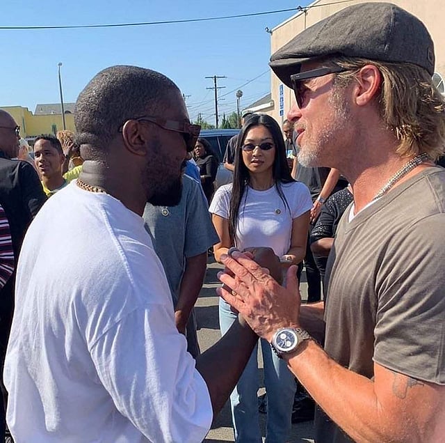 After he toured the world to promote Quentin Tarantino's Once Upon A Time In Hollywood along with Leonardo DiCaprio and Margot Robbie, Brad Pitt has impressed the internet again after appearing at the Sunday service by Kanye West in Watts, California.
