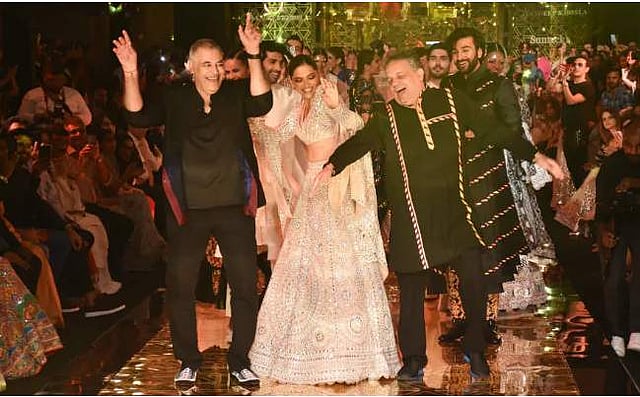 Veteran actress Jaya Bachchan and her daughter Shweta, who were also present at the event, joined Deepika on the ramp to shake a leg.