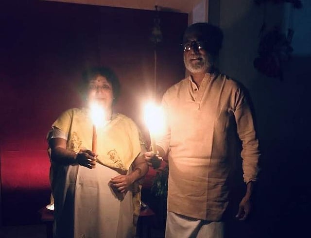 South superstar Rajinikant too supported PM Modi's call. The actor along with his wife Latha Rajinikanth light candles to show their support.