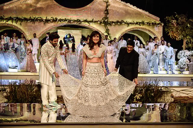 A spectacle was promised and delivered as B’town heartthrob Kartik sashayed down the ramp in an intricate Manish Malhotra kurta-pyjama, all smiles with him and his technicolour sneakers being the highlight!
