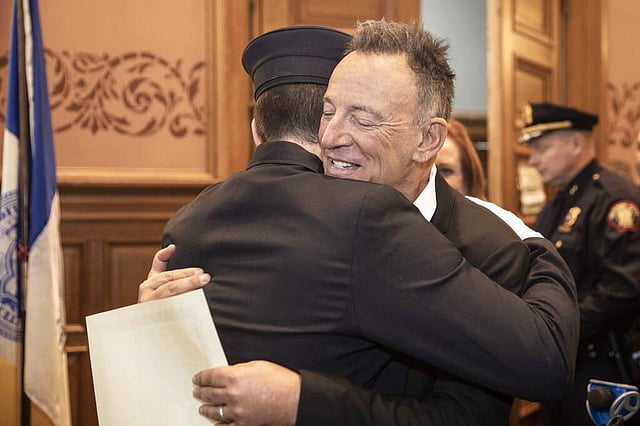 JERSEY CITY, NJ (AP): Bruce Springsteen's son was sworn in Tuesday as a firefighter with the Jersey City Fire Department, along with 15 others.