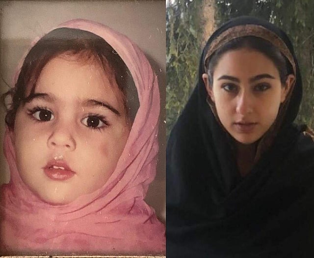 Mumbai (IANS): Wishing her fans Eid Mubarak, actress Sara Ali Khan treated them with a childhood picture that shows her head covered with a pink veil.