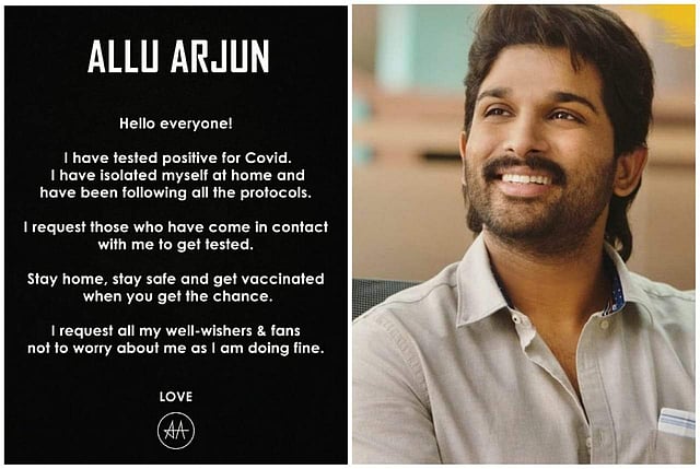 Telugu star Allu Arjun has tested positive for Covid-19 and has isolated himself at home. The actor posted a note on social media on Wednesday to share the health update.