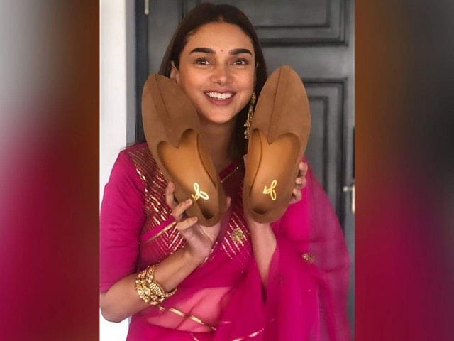Sharing the first looks from the wedding preparations, Aditi shared a story on Instagram of herself holding the groom Vaibhav’s brown-coloured shoes meant to be used for the traditional joota chhupai ritual, and wrote, “Always got your back father,” along with a couple of smileys and heart emoji.