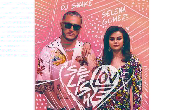DJ Snake and Selena Gomez on the song poster of Selfish Love