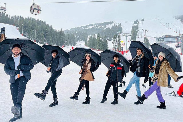 The picture shows Hrithik, Pashmina, Hrehaan, Hredaan, and Saba, grinning and posing in the snow while celebrating their white Christmas in Switzerland. Eshaan Roshan, another cousin of Hrithik, was also seen in the image.