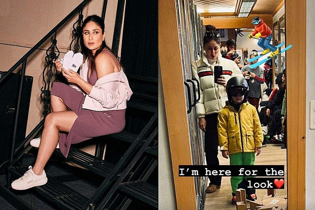 Sharing Taimur’s picture the actress wrote, “I am here for the look.” The image showed Kareena and Taimur all ready to go skiing. The actress was seen donning a white winter jacket, pouting for the camera, while Taimur was dressed in a yellow jacket with goggles and a helmet.