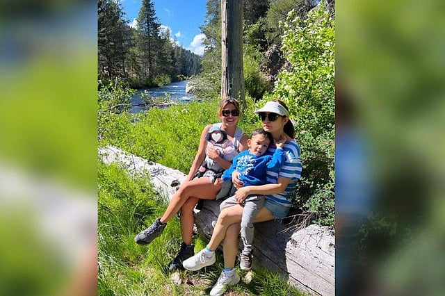 Actress Priyanka Chopra Jonas recently posted a picture with her daughter, Malti Marie Chopra Jonas on a hiking trip. In the photograph shared on Instagram, we can see Priyanka with her friend, sitting on a log, holding their babies. A row of trees, clear blue water and an endless sky paint the background.