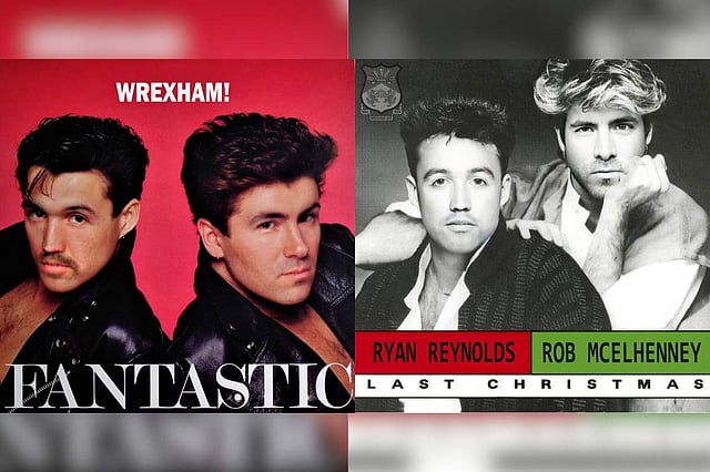 Reynolds (47) and Rob (46) who together own U.K. soccer team Wrexham, styled their hair and outfits to mimic those worn by Wham! stars George Michael and Andrew Ridgeley on the original cover art, reports from media sources.