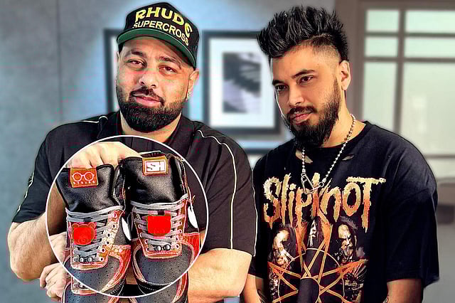 The custom-designed sneakers blend both Badshah and Santanu's artistic sensibilities. It features a luxurious soft velvet fur inside and the colour palette is inspired by Badshah's all-India tour. Some of the notable details include a heart-shaped chain holder which is Badshah's tour logo, a metallic teddy bear atop the shoelaces and his nickname 'Bad Boy' at the heel tab. You will also find 'Paagal' stitched on the interior.