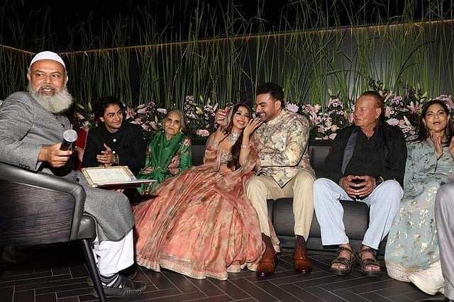 Arbaaz Khan’s recent nikah ceremony was a heartwarming family affair, filled with joyous moments and captured in intimate photographs. Arbaaz shared a glimpse of the special day on Instagram, expressing the deep connection with his loved ones. In one touching image, the maulvi officiates the ceremony, with Arbaaz and bride Sshura Khan seated on a bench, surrounded by family. Arbaaz’s mother, Salma Khan, sat close to the bride, while father Salim Khan was near the groom. Salman Khan and Alvira Khan, Arbaaz’s brother and sister, were seen sitting beside their father, creating a scene filled with familial warmth.
