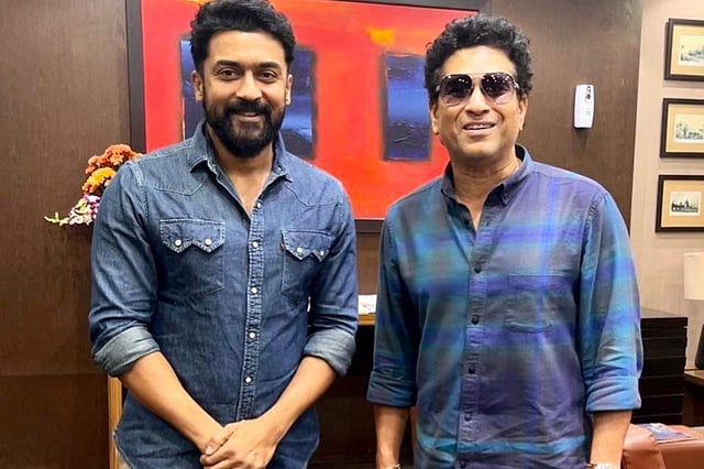 Sharing the photo on his social media handle, Suriya wrote, "Respect & Love!! @sachintendulkar (sic).". In the photo, Suriya can be seen dressed in a denim shirt with Sachin rocking a patterned shirt with jeans. Suriya's followers have reacted to the photo and praised the two icons.