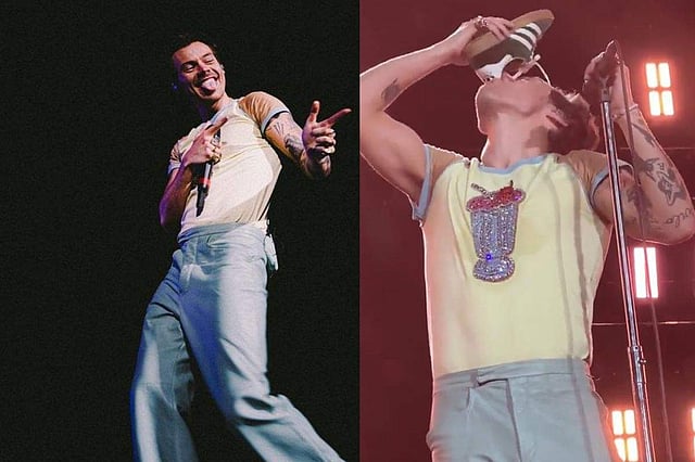 During his performance, the singer took a sip from one of his shoes, filled it with liquid, and then, without hesitation, drank the entire contents of the shoe before re-putting it on his foot. According to reports, the tradition was popularized by Daniel Ricciardo. Harry remarked, ”This is one of the most awful customs ever." Additionally, he claimed that after doing it, he felt like "a new person" and that he will talk "at length" with his therapist about it.