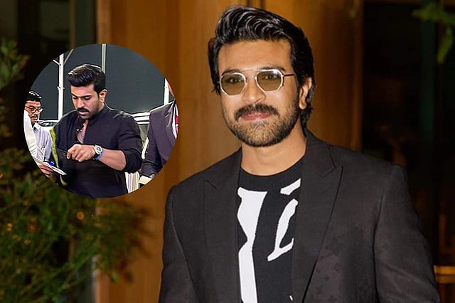Telugu actor Ram Charan often gets spotted at the airport but today, however, his look caught the attention of Twitterati and got them talking. The RRR actor was seen walking barefoot to the departure section with his bodyguards.