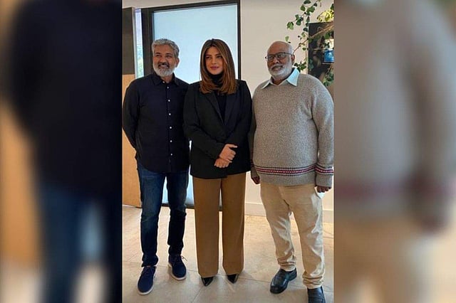 Actress Priyanka Chopra took to her Instagram stories today to share a snap with RRR’s director SS Rajamouli and music composer MM Keeravani. The actress recently attended a screening of the international sensation in the US, where she posed with the filmmaker and the composer and also delivered a speech on stage. In the image, she can be seen donning a black blazer with beige trousers while Rajamouli was dressed in a black shirt and blue denim.