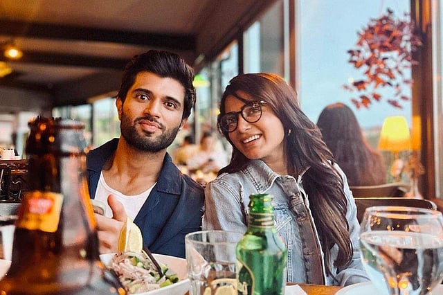 Indian actress Samantha Ruth Prabhu took to Instagram on Thursday to share a picture of her with Kushi co-star Vijay Deverakonda, expressing her appreciation for him for being by her side. In the image, Vijay and Samantha were seen posing during lunch at a restaurant. In the candid snap, Vijay was seen donning a white t-shirt with a blue blazer while Samantha was dressed in a denim jacket and sporting glasses.