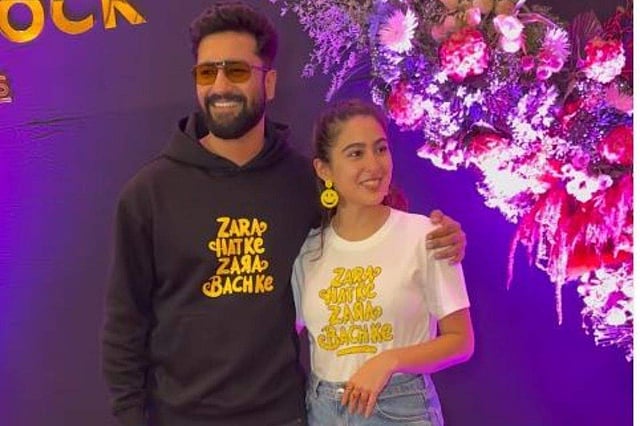 The cast and crew of the recently released film, Zara Hatke Zara Bachke, starring Sara Ali Khan and Vicky Kaushal in lead roles, celebrated the success of the project on Monday with a party. The bash was a star-studded event with celebrities like Sonakshi Sinha, Tamannaah Bhatia, Kriti Sanon, and others attending it, dressed in outfits inspired by the movie. Photos and videos of the same were shared on Instagram by a paparazzi page.