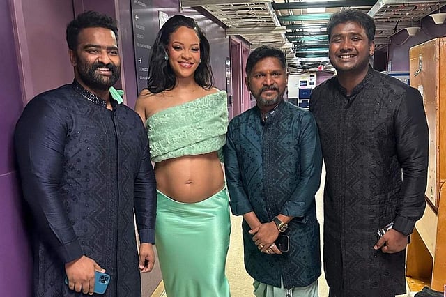 The singers Sipligunj and Bhairava shared celebratory photos from the ceremony. In one of the social media posts, we saw the duo pose with Barbadian pop queen Rihanna. The Lift Me Up singer and mom-to-be was seen dressed in a lime green bustier and skirt from Bottega Veneta. Her ensembles were quite the talk of the Oscars this time as she changed her outfits thrice during the ceremony and flaunted her baby bump effortlessly in all of them.