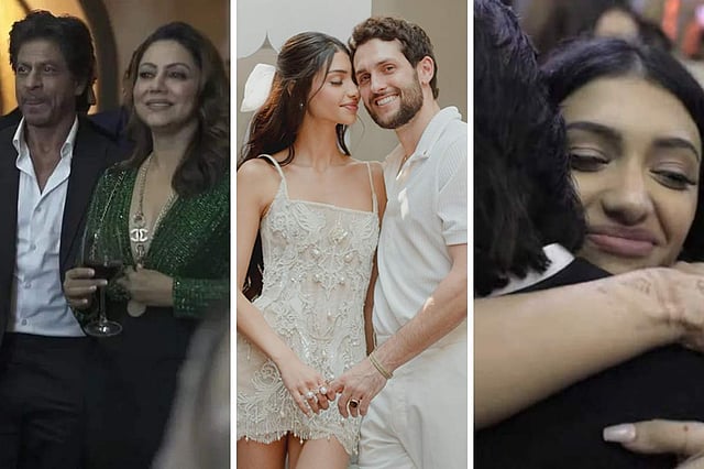 In one of the videos, we see the Bollywood dancing to AP Dhillon's song Dil Nu. For the ceremony, Shah Rukh picked a black tuxedo which he paired with a crisp white shirt. Gauri, on the other hand, kept her look chic in a green and black cutout gown.