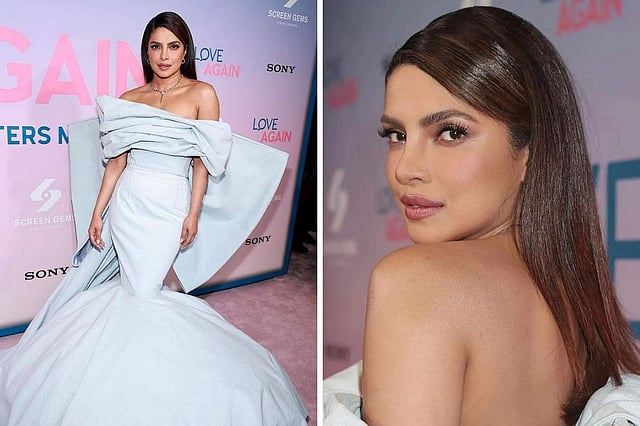Mostly made to look high-end and affluent with fabric and design, gowns do not come close to the casual-yet-chic aesthetic. Priyanka, however, has checked that box as well. For the premiere of Love Again, an upcoming rom-com where she shares screen space with Sam Heughan, the actress picked a denim gown.
