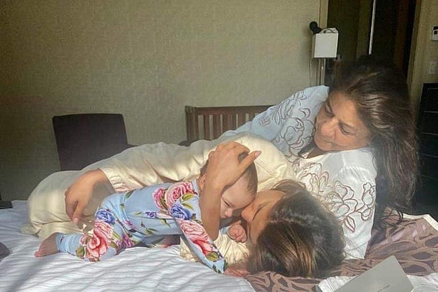 In the first image, Malti, Priyanka, and Madhu are seen on a bed. In the following image, Denise can be seen seated at a table with the mother-daughter duo. The face of Malti was clear in the first snap, but Priyanka blurred it in the second.