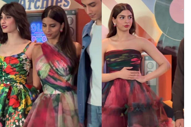 Last night in Mumbai, Suhana Khan and Khushi Kapoor stole the spotlight as they graced the promotional event for their upcoming film, The Archies, alongside co-stars Vedang Raina, Agastya Nanda, Mihir Ahuja, Aditi Dot, and Yuvraj Menda. The star-studded cast’s pictures and videos flooded social media, sparking excitement among their fanbase. Dressed in printed dresses, Suhana and Khushi showcased their impeccable style, creating a memorable twinning moment that fans adored.