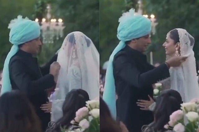 Mahira's manager, Anushay Talha Khan, took to Instagram to share a touching video of Mahira gracefully walking down the aisle towards her groom. The emotion-laden scene saw Salim wiping tears of joy and love, later lifting her veil, tenderly kissing her forehead, and enveloping her in a heartfelt hug. The bride herself was visibly moved, reciprocating the affection with a warm embrace.