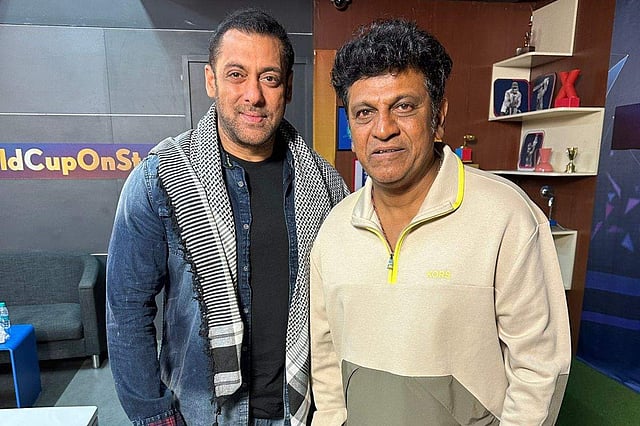 Ahead of the India-Pakistan cricket match, superstars Salman Khan and Shiva Rajkumar met up with one another. After meeting the Bollywood superstar, the Kannada actor called him a man with a heart of gold. The Bhoomi Thayiya Chochchala Maga actor was promoting his upcoming pan- Indian heist-action-thriller film Ghost when he met Salman who was also promoting his upcoming spy-thriller film Tiger 3 at the office of a popular media organisation recently.