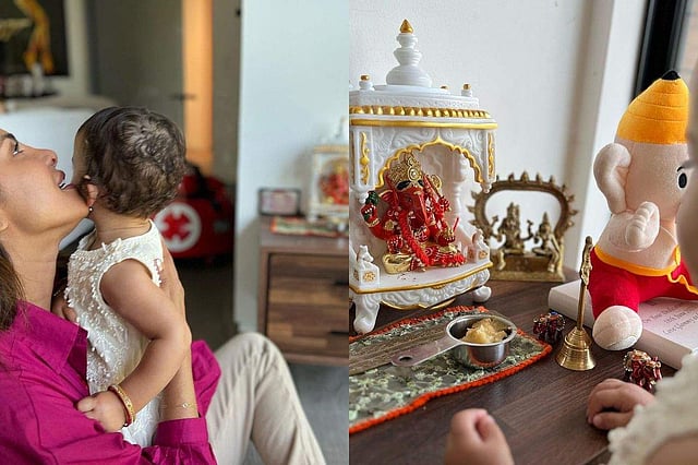 In one of the images shared by the actor, her decorated home temple and Lord Ganesha's idol, accompanied by Malti's cherished Ganpati toy placed lovingly nearby were seen. Another snap showed a heartwarming moment of Malti embracing her Ganpati Bappa toy.