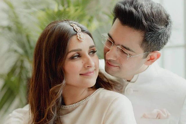 AAP Rajya Sabha MP Raghav Chadha and Bollywood actress Parineeti Chopra are now officially a married couple. Their marriage was solemnised on Sunday evening at a luxury hotel here in the presence of close friends and family, with the assembled paparazzi having to satisfy themselves with only long-distance shots, such as those of Raghav enjoying a boat ride on Lake Pichola.