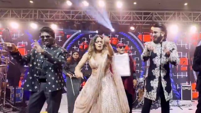 Videos of Ranveer and Atlee enjoying themselves circulated among fans. In one clip, Ranveer was seen assisting Atlee with his outfit before they hit the dance floor, showcasing their moves to popular Tamil songs. Aditi joins them, accompanied by drummer Sivamani. Shankar’s son Arjit also joins in the fun onstage.