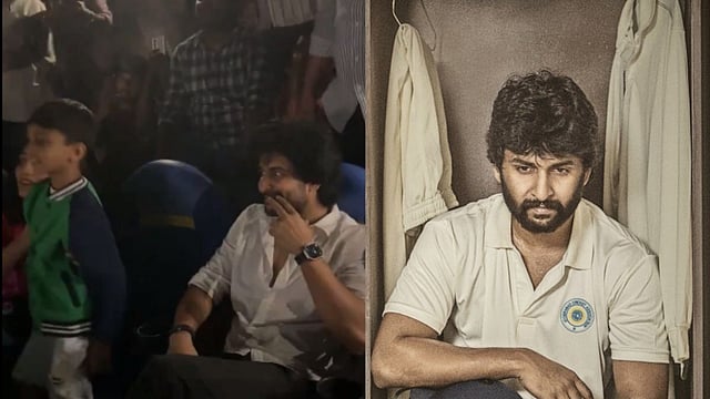 Nani, along with his wife Anjana Yelavarthy and Junnu, caught a screening of the film at Sudarshan 35 MM theatre in Hyderabad. Photos and videos captured by fans show a joyful Junnu, beaming as fans surrounded him. In another heartwarming moment, a video shows Nani gazing fondly at his son as he stands up with the audience during an emotional scene in the film.