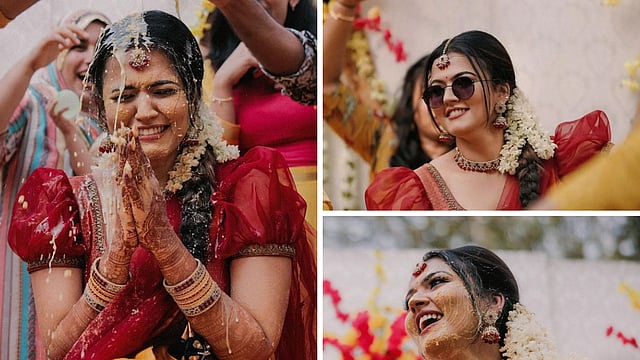 In one of the photos, we spotted Aparna in a gorgeous sari in shades of red and yellow and in another one, she can be seen clad in turmeric paste from head-to-toe.