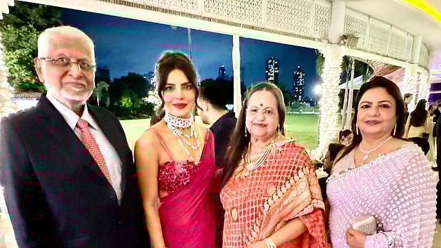 The intimate event held for the couple saw both Priyanka and her mother, Madhu Chopra, delivering heartfelt speeches, according to inside pictures shared by a guest. Priyanka looked stunning in her traditional attire, while Madhu opted for a lilac sari and Neelam and Siddharth sported matching Western blue outfits.