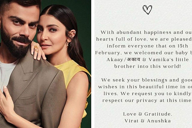 Taking to Instagram to make the announcement, the couple wrote, “With abundant happiness and our hearts all of love, we are pleased to inform everyone that on 15th February, we welcomed our baby boy Akaay & Vamika's little brother into this world! We seek your blessings and good wishes in this beautiful time in our lives. We request you to kindly respect our privacy at this time. Love & Gratitude. Virat & Anushka.”