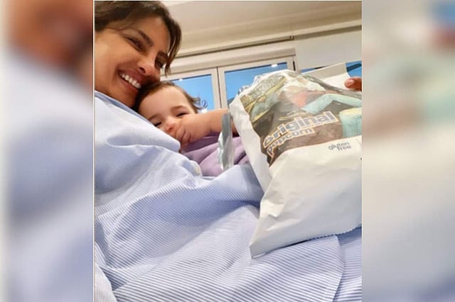 Actress Priyanka Chopra Jonas has once again treated her fans to a glimpse of her little bundle of joy, Malti Marie (MM), who is seen happily munching popcorn.