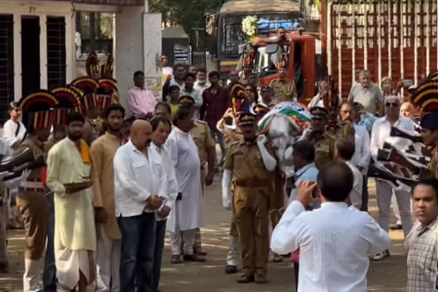 His mortal remains were wrapped in tricolour at his residence, 6A, Hill Side in Mumbai. Videos and photos posted on social media show the band and troops giving a farewell to the ghazal legend.