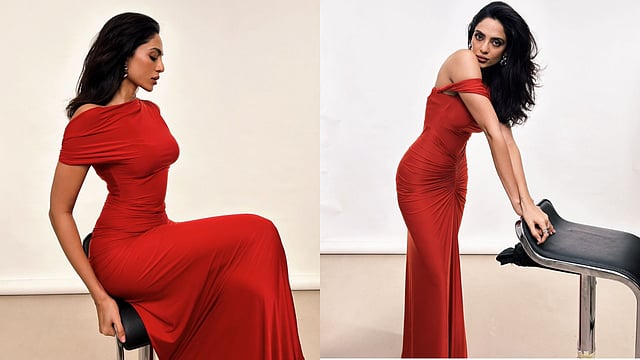 Dhulipala's choice of attire was nothing short of a showstopper, with all eyes drawn to the mesmerizing red dress that clung to her every curve with tantalizing precision. The sleek one-shoulder design accentuated her flawless neckline, while the fitted bodice effortlessly emphasized her enviable hourglass figure. With each movement, she exuded an aura of confidence and sensuality that was simply irresistible. The centre gathering added a touch of intrigue, elevating the dress from merely stunning to utterly breath taking.