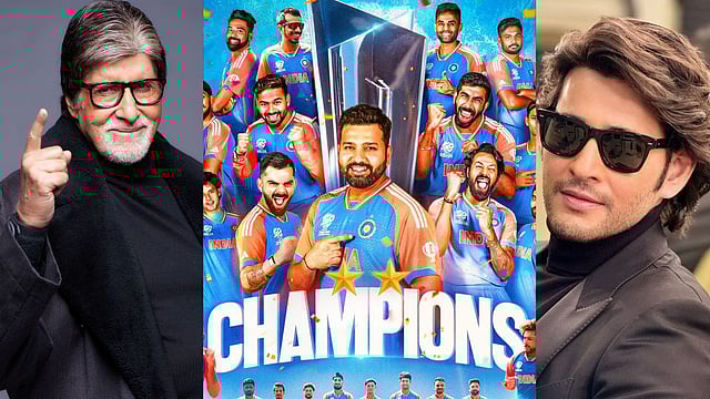 Mahesh Babu, sharing a picture of Virat Kohli and Rohit Sharma, wrote, “It’s ours!! The heroes-in-blue are the new 'world champions'! Take a bow Team India for your relentless efforts on the field today! @surya_14kumar, your catch will be etched in history… what a stunner. Super proud of this historic win. Jai Hind!”
