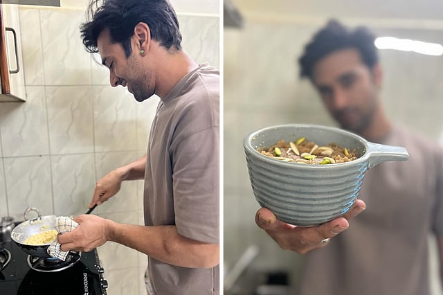 “Green flag alert! Ok so something major happened yesterday and I fell in love all over again. I didn't think this was possible, but yet, It happened. Pulkit ki pehli rasoi happened yesterday. I walked into the kitchen and realised he's making halwa,” she wrote alongside the images.
