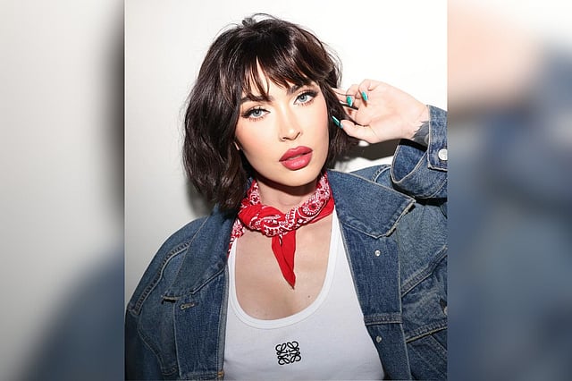As per the source, Megan's hair now grazes her jawline, with the colour a deep chocolate brown hue. The fringe she has grazes her brows, and in some of the snaps she shared debuting the look, she wore a deep pink-red-hued lipstick, a white vest, a red bandana around her neck, and a denim jacket.