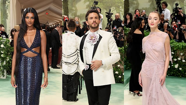 Simone Ashley, known for her role as Kate Sharma in season two, dazzled in a striking black and blue Prabal Gurung gown featuring intricate sequin and leaf-like motifs. Meanwhile, Jonathan Bailey, who plays Anthony Bridgerton, Kate's love interest, opted for a custom Loewe ensemble. His cream-white double-breasted jacket with a black satin lapel, paired with black trousers, was complemented by two hand-painted metal peonies with a sugar crystal texture, perfectly in tune with the evening's floral theme.