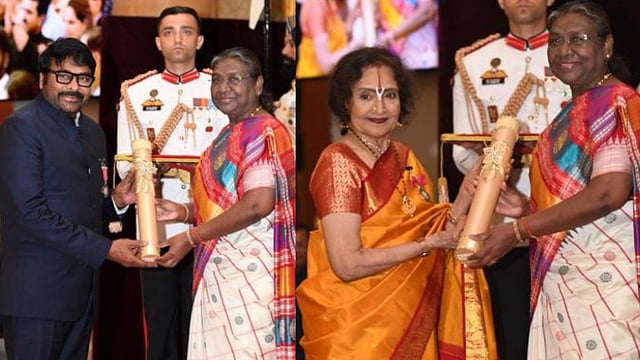 In a ceremony on Thursday, veteran actors Vyjayanthimala and Chiranjeevi Konidela were awarded the prestigious Padma Vibhushan, recognising their remarkable contributions to the film industry. President Droupadi Murmu presented the awards at the Rashtrapati Bhawan, in the esteemed Thrown Room, also known as Darbar Hall, in Delhi.