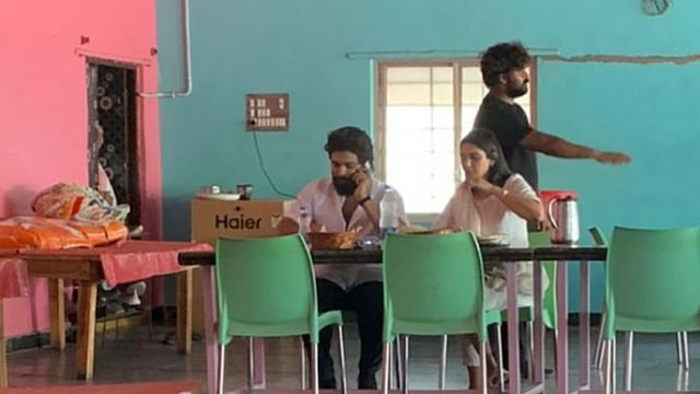 The image, shared by a fan account, captured Allu in a crisp white shirt and black trousers, digging into a meal while on the phone. Sneha, dressed in a simple salwar kameez, sat beside him.