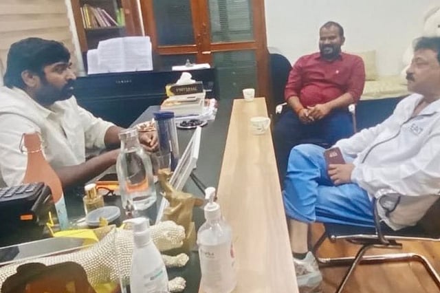 Going by the picture, it looks like RGV has gone to meet VSP at his office. The two are seen discussing something from across the table.