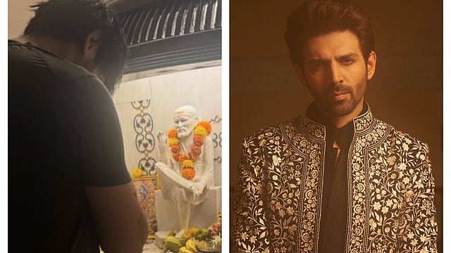 As the trailer launch for his upcoming film Bhool Bhulaiyaa 3 approaches, actor Kartik Aaryan shared a heartfelt moment on Instagram, posting a picture of himself seeking blessings at his home temple. Joining him was his adorable puppy, Katori.
