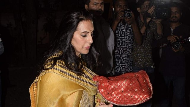 Sunita Kapoor, the wife of actor Anil Kapoor celebrated Karva Chauth last night and the wives of Bollywood actors lined up at her house for the customary annual puja. Sunita earlier shared a picture of her hands adorned with henna on Instagram.