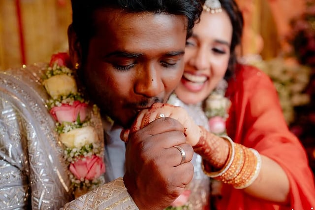 As seen in the pictures, the couple looked stunning on the day of their ring ceremony. Rahul in an off-white sherwani, bordered with golden stripes pulled off a dashing look while Harinya in her gorgeous red lehenga truly stole the spotlight.