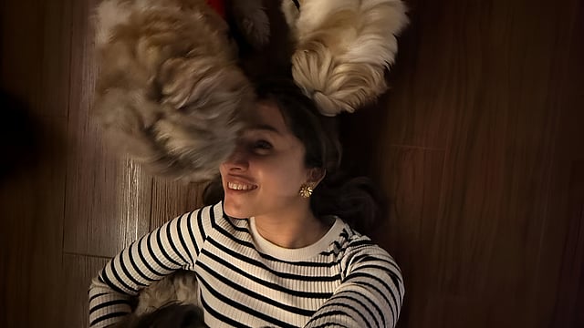 Captioning the post, she wrote, “Angle badlo, rang nahi(Change the angle, not the colour).” The actress also shared the snapshot with her pets on her Instagram Stories, adding the caption “Saturday Sukoon” to highlight her weekend relaxation.