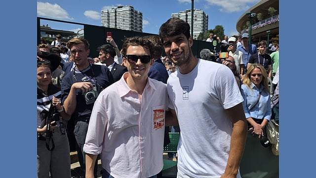 The 22-year-old defending champion breezed past Britain’s Cameron Norrie in straight sets (6-2, 6-3, 6-3) to secure his place in the Wimbledon semifinals. But it wasn’t just tennis fans watching, Marvel star and golf enthusiast Tom Holland made a surprise visit to Carlos's practice session, and things quickly took a friendly turn.